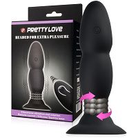 Jedyny w swoim rodzaju wibrujący korek analny z metalowymi, rotującymi kulkami sterowanymi za pomocą bezprzewodowego pilota lub bezpośrednio z gadżetu. Zapewnia przeszywający masaż na całej długości anusa, pobudza go intensywnymi wibracjami i zniewala wyjątkową obrotową stymulacją. Kulkowy kształt korka gwarantuje rozkosz już poprzez samo poruszanie nim w wąskim wnętrzu. Bezprzewodowy pilot daje możliwość przejęcia władzy nad Twoją rozkoszą partnerowi. Silikon z jakiego został wykonany gwarantuje także stuprocentowo bezpieczeństwo i komfort dla Twojego ciała.