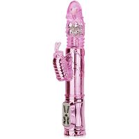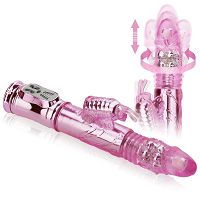 Wibrator wykonany z miękkiego i przyjemnego w dotyku żelu. Gwarantuje niesamowicie intensywną przyjemność dzięki wyjątkowemu połączeniu ruchu posuwistego, masującymi kuleczkami i silnie wibrującym motylkiem. Pozwól mu się wsunąć w swoją szparkę i odkryj jego siłę dawania przyjemności. Masujące perełki wymasują wnętrze pochwy, a dodatkowo wysuwająca się w przód i tył doprowadzi Cię na sam szczyt rozkoszy. Dodatkowo do zabawy możesz dołączyć wibrującego motylka z niezależnym systemem wibrującym. Ten niesamowity gadżet posiada aż 5 prędkości posuwistości góra dół a co za tym idzie 5 prędkości obracania się masujących kuleczek oraz 5 funkcji wibracji umieszczonej w motylku. Masujące kuleczki mają jeszcze jedną dodatkową zaletę, mianowicie można zmieniać kierunek ich obrotów.