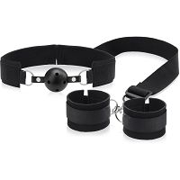Knebel z kulką mocowany razem z kajdankami. Zestaw pozwala zdominować partnera i przejąć kontrolę nad jego wolą. Uwięź go w wymarzonej pozycji i rozkoszuj się władzą nad jego ciałem i odczuwaną przez was oboje przyjemnością. Zniewolony kochanek nie będzie mógł Cię dotknąć ani jęknąć z rozkoszy, co wznieci ogień między wami i pozwoli wam w pełni czerpać z seksu wszystkimi zmysłami. Knebel oraz kajdanki są w pełni regulowane przez rzepy, długość paska łącząca je razem jest również zmienna. Zestaw wykonany z miłej w dotyku pianki praz taśmy parcianej.