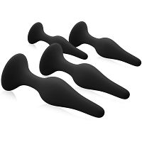 Bogaty komplet do zabaw analnych ? cztery korki o różnej wielkości z solidną przyssawką, wykonane z wysokiej jakości, aksamitnego silikonu. Doskonały zestaw zarówno dla amatorów oraz specjalistów w pieszczotach anusa. Zróżnicowany rozmiar plugów zaspokoi początkujących i doświadczonych, dając im taki wymiar rozkoszy, jakiego na danym etapie pragną. Gładki materiał oraz ergonomiczny kształt korków czyni ich aplikację wyjątkowo komfortową, a całą zabawę ekscytującą już od pierwszego kontaktu. Przyssawka zapewnia także możliwość samodzielnych igraszek bez użycia rąk. Wszystko po to, aby cieszyć się pełnią analnych rozkoszy.
