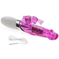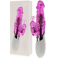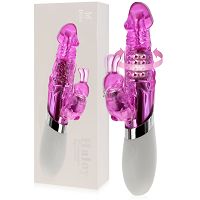 Wibrator królik wykonany z połączenia wysokiej jakości tworzywa TPR, ABS i silikonu. Mocny i niezwykle skuteczny masturbator dla kobiet, który dzięki zastosowaniu dwóch kompatybilnych silników doprowadzi Cię do intensywnego orgazmu w zaledwie kilka chwil. Wibrator ma silniczek wibracyjny w króliku do łechtaczki oraz wirujące kulki w części do penetracji, które doskonale pieszczą punkt G i całe wnętrze pochwy. Kulki obracają się o 360st., a kierunek ruchu prawo-lewo można łatwo zmieniać jednym przyciskiem. Wibrator ma 6 funkcji wibracji w króliku i 6 funkcji obrotowego ruchu kulek. Funkcje są ze sobą sprzężone i działają razem dla najlepszych efektów stymulacji. Wygodna, antypoślizgowa rączka z silikonu ułatwia trzymanie i używanie zabawki. Konstrukcja odporna na zachlapania ułatwia zachowanie gadżetu w czystości.