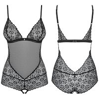 Mamy dla Ciebie coś zjawiskowego. Seksowne body Shibu, które maksymalnie podkreśla kobiece kształty! Jak to się dzieje? Po pierwsze ? specjalny krój i linie szycia. To dzięki nim sylwetka wygląda pięknie i zmysłowo. Po drugie ? geometryczna koronka. Unikatowe wzory zdobią ciało i świetnie eksponują krągłości. Gotowa na masę przyjemności? Bielizna w pikantnym fasonie najlepiej rozgrzewa atmosferę, a otwarty krok zachęca do niegrzecznej zabawy. Przekonasz się już niebawem!