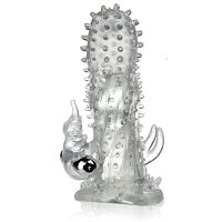 Silikonowa nakładka wykonana z miękkiego, żelowego silikonu. Niezwykle rozciągliwa - dopasuje się do każdego penisa. Na nakładce znajdują się liczne wypustki różnych rozmiarów, które wymasują dogłębnie kobiecą pochwę. Dzięki niej Twoja kobieta może osiągnąć szybciej orgazm. Dodatkowo nakładka ściśle przylega do penisa, dzięki czemu Twoja erekcja może szybko stać się silniejsza i znacznie dłuższa. W dolnej części nakładki znajduje się słonik z silnymi wibracjami. Jego wyciągnięta trąba dokładnie wymasuje łechtaczkę Twojej kobiecie. Ta nakładka sprawi, że sex nabierze nowego oblicza. Baterie + mały żel poślizgowy w komplecie
