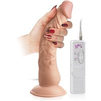 Realistyczny wibrator penis na przyssawce. Dildo o 3 poziomach intensywności wibracji. To Ty decydujesz, czy chcesz zabawić się delikatnie, nieco mocniej czy na ostro. Penis pokryty jest nabrzmiałymi z podniecenia żyłkami, a soczysta żołądź szybko rozbudzi w Tobie erotyczny nastój. Dzięki osadzeniu dildo na mocnej przyssawce możesz umieścić gadżet na dowolnej gładkiej powierzchni i zabawiać się bez użycia rąk. Wygodne, intuicyjne sterowanie przewodowym pilotem nie sprawi Ci żadnych trudności.