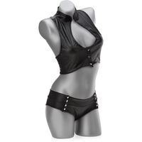 1. Komplet erotyczny wet skin – top z głębokim dekoltem i guziczkami, które prowokacyjnie zapraszają do ich szybkiego rozpięcia, oraz szorty ponętnie wycięte na pośladkach. Efekt „mokrej skóry” sprawia, że materiał apetycznie błyszczy i podkreśla kształty. Tył w stylu bokserki odsłania ramiona i plecy, a prześwitujący materiał subtelnie eksponuje sutki. To bielizna, która kusi, prowokuje i gwarantuje elektryzujący efekt w sypialni.