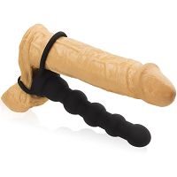 Z tym produktem seksualne doznania będą spotęgowane, dłuższe i bardziej intensywne! Ringi uciskowe umieszczone na penisie i jądrach wzmocnią erekcję i opóźnią wytrysk. Kulkowa sonda zakładana w ten sposób wyposaży mężczyznę w dodatkowego penetratora, który zatroszczy się o rozkosz dla anusa partnerki. Korek, dzięki wibracjom zapewni jej wstrząsającą przyjemność. Specjalny kształt dokładnie wymasuje wnętrze ciała. Produkt jest w 100% wodoodporny i wykonany z bezpiecznego silikonu.