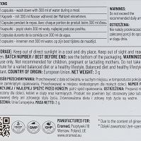 Ostrzeżenia: Preparat nie jest przeznaczony dla dzieci, kobiet w ciąży oraz karmiących. Produkt nie powinien być stosowany jako substytut zróżnicowanej diety ani zdrowego stylu życia. Zrównoważona dieta i zdrowy tryb życia są ważne. Nie należy przekraczać zalecanej porcji do spożycia w ciągu dnia.