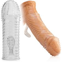 Super cienka nakładka pozwoli Ci w pełni czerpać radość z seksu, a ponadto zapewni Twojej partnerce odlotowe doznania, co wzbogaci wasze życie erotyczne i zwiększy waszą satysfakcję. Nakładka wykonana została z elastycznego żelu, mocno rozciągliwego i dobrze przylegającego do penisa. Posiada wiele wypustek stymulujących wnętrze pochwy oraz osobną nasadkę do pieszczot łechtaczki. Taki nieduży dodatek może niewyobrażalnie podnieść jakość waszych łóżkowych igraszek.