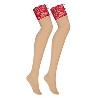 Obsessyjny przepis na wyjątkowo udany wieczór? Pończochy Rediosa: wytrzymały, cielisty materiał, koronkowa, czerwona wstawka i wycięcia, które doskonale zwracają uwagę na Twoje nogi. Tak myśleliśmy, że Ci się spodoba? Czerwona koronka, seksowny wzór, fenomenalny fason podkreślający kobiecość i szczypta pikanterii ? dla podkręcenia rozkosznej atmosfery. Wcale nie potrzebujesz wyszukanej strategii uwodzenia, by wszystko wyszło doskonale. Chyba się zgodzisz, że zmysłowa, intrygująca bielizna w seksownym kolorze w zupełności Ci wystarczy?